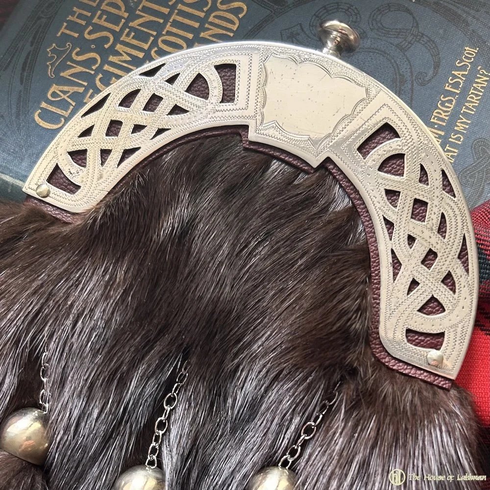 We took great care in reviving this truly remarkable vintage sporran by meticulously adorning it with a new, ethically sourced dark chocolate Musquash fur front that enhances its unique character.